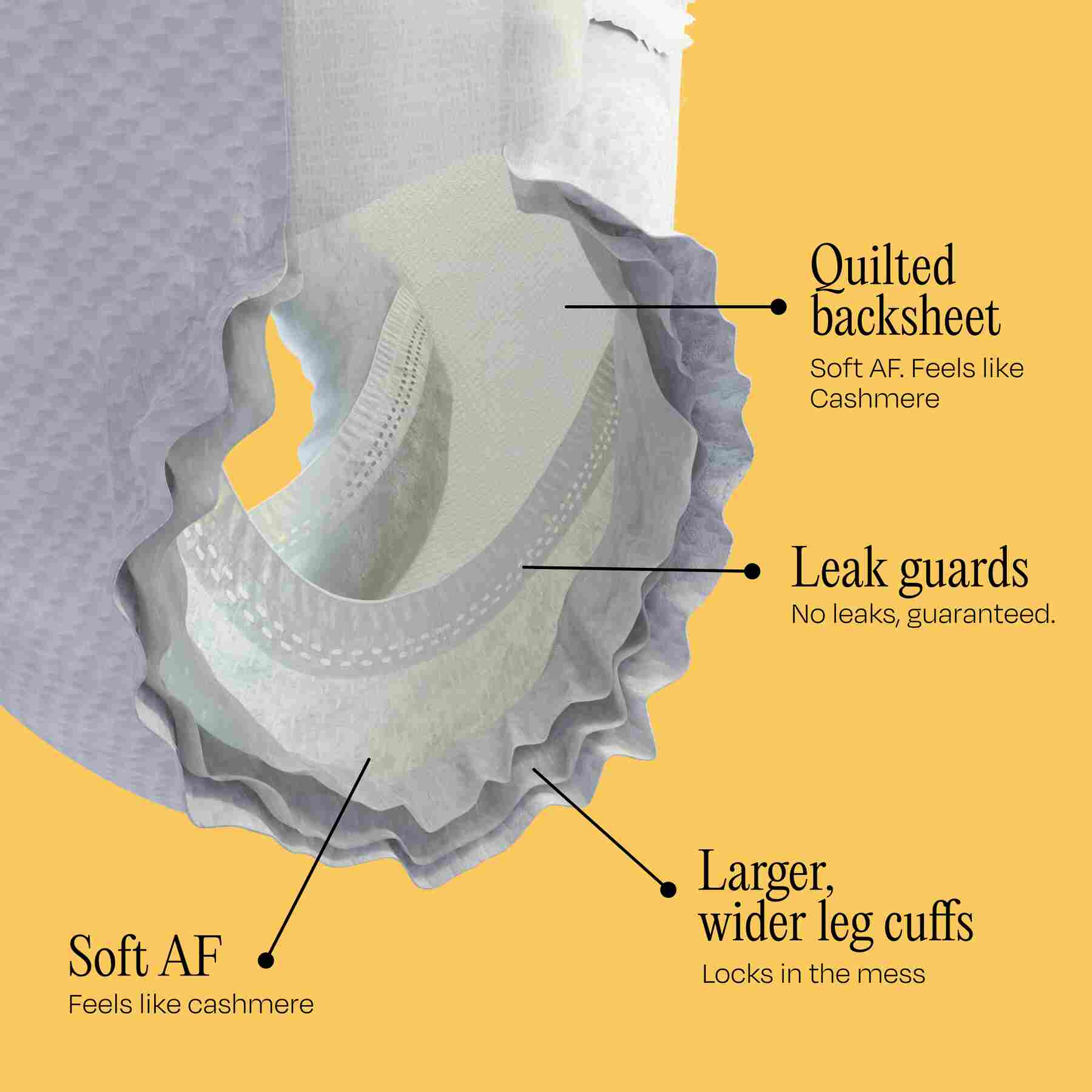 It’s what’s inside (the nappy) that counts. So, we’ve created a nappy that works even harder day and night, with absolutely no added nasties.